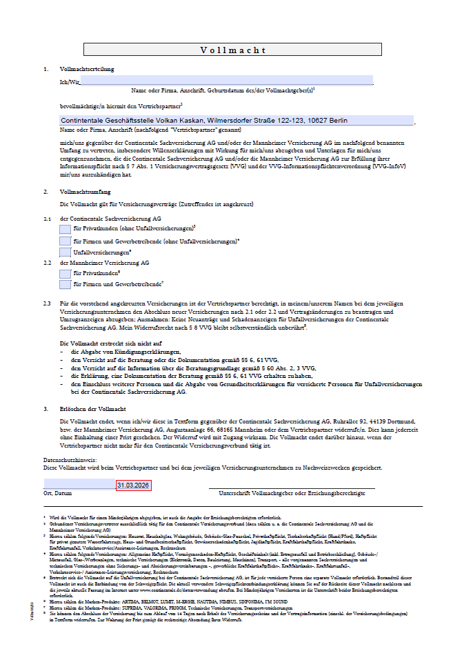 Kundenvollmacht